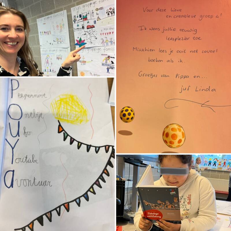 Na 10 jaar terug voor de klas. Mijn passies gecombineerd: boeken en lesgeven. Via Qrabbl viel ik in als creatief leraar. Het "gewone" lesprogramma ging aan de kant en ik bracht m'n stapels boeken en knutselspullen mee. Met mijn 3 eigen boeken als leidraad deden we een boekendans, schreven kinderen zelf een verhaaltje voor het namenboek en hing aan het eind van de dag een poster over onze gekke families aan de muur. Deze groep 4 was gek op "Pippa" en een meisje wilde weten waar "Sabotage..." over ging. I❤️📚